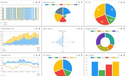 4)提供豐富的可視化控件庫(kù),通過拖拽、簡(jiǎn)便配置即可完成美觀的UI設(shè)計(jì)。支持GIS地圖、曲線圖、柱狀、餅圖、圖表、按鈕、儀表圖等控件。