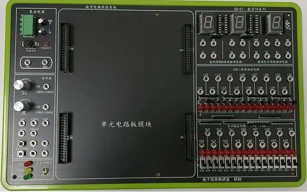 數(shù)字電子技術(shù)實驗箱,數(shù)字電子技術(shù)實驗系統(tǒng)是結(jié)合數(shù)字電路兩門課程的實驗教學(xué)特點,參照現(xiàn)有的教學(xué)實驗產(chǎn)品,由華北電力大學(xué)老師提出設(shè)計方案并改進(jìn)而來的。此款產(chǎn)品借鑒了國內(nèi)主流產(chǎn)品的設(shè)計特點,總結(jié)學(xué)校在實驗課程中發(fā)現(xiàn)的問題,有針對性的加以解決。產(chǎn)品本著實驗設(shè)計型提高學(xué)生的動手能力培養(yǎng)、產(chǎn)品牢固型提高產(chǎn)品的皮實驗程度不易損壞、操作靈活型產(chǎn)品使用靈活保管方便。