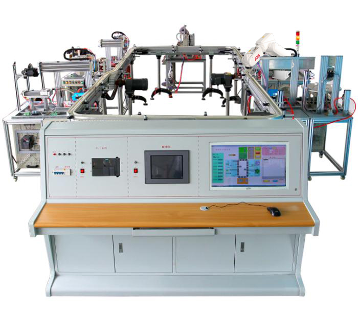 模塊式柔性環(huán)形自動(dòng)生產(chǎn)線及工業(yè)機(jī)器人應(yīng)用實(shí)驗(yàn)系統(tǒng)是專門為高等院校、職業(yè)教育培訓(xùn)機(jī)構(gòu)研制的工業(yè)機(jī)器人FMS柔性生產(chǎn)實(shí)驗(yàn)系統(tǒng),根據(jù)機(jī)電類、自動(dòng)化類、先進(jìn)制造類行業(yè)、企業(yè)中工業(yè)自動(dòng)化應(yīng)用的特點(diǎn),對(duì)柔性制造技術(shù)的工作過程進(jìn)行研究,對(duì)工業(yè)現(xiàn)場(chǎng)設(shè)備進(jìn)行提煉和濃縮,并針對(duì)實(shí)驗(yàn)教學(xué)活動(dòng)進(jìn)行專門設(shè)計(jì),融機(jī)、光、電、氣,包含了PLC、6軸工業(yè)機(jī)器人、傳感器、氣動(dòng)、工業(yè)控制網(wǎng)絡(luò)、電機(jī)驅(qū)動(dòng)與控制、計(jì)算機(jī)等諸多技術(shù)領(lǐng)域,整個(gè)系統(tǒng)由MES生產(chǎn)管理系統(tǒng)、WINCC監(jiān)控系統(tǒng)、主控PLC和下位PLC通過網(wǎng)絡(luò)通訊技術(shù)構(gòu)成一個(gè)完整的多級(jí)計(jì)算機(jī)控制系統(tǒng),通過訓(xùn)練,使學(xué)生了解工業(yè)機(jī)器人應(yīng)用及FMS的基本組成和基本原理,讓學(xué)生全面掌握機(jī)電一體化技術(shù)的應(yīng)用開發(fā)和集成技術(shù),幫助學(xué)生從系統(tǒng)整體角度去認(rèn)識(shí)。