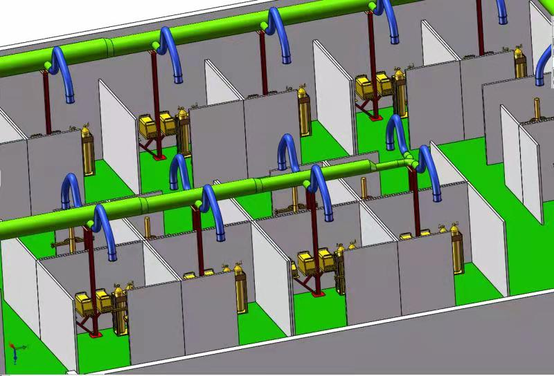 3、3米阿爾法柔吸臂,合理分配,布局美觀分組安裝處理焊接煙塵,每個柔吸臂口都有開關(guān),當(dāng)使用時可以打開,不使用時可以關(guān)閉。螺旋風(fēng)管組合合理,風(fēng)量壓力計算準(zhǔn)確。每臺風(fēng)機(jī)變頻控制,風(fēng)機(jī)安裝在實訓(xùn)室屋頂,并做遮風(fēng)擋雨消音防曬風(fēng)機(jī)房,噪音不得高于76分貝;