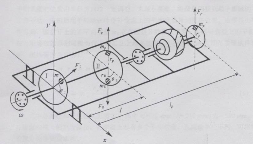 試件在圓盤Ⅰ、Ⅱ各等效著一個不平衡質(zhì)量m 、m ,對x軸產(chǎn)生的慣性力矩為: