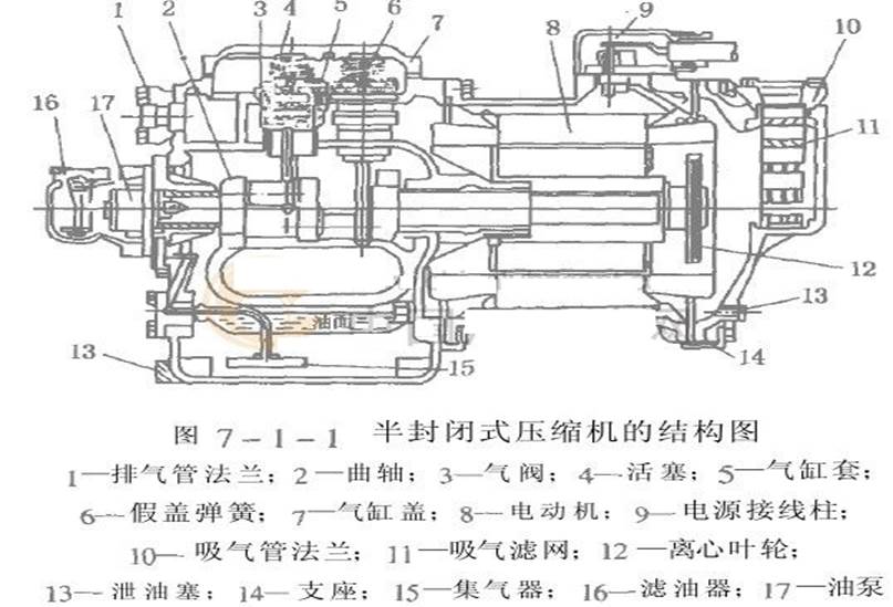 各類活塞式制冷壓縮機的拆卸工藝雖然基本相似,但由于結(jié)構(gòu)不同,所以拆卸的步驟和要求也略有不同,應(yīng)根據(jù)各類壓縮機的特點制訂不同的拆卸方法,下面以半封閉制冷壓縮機為例說明這種類型的制冷壓縮機拆卸方法和步驟。