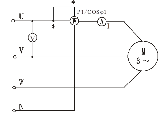 (2)用單瓦特表法測(cè)三相電路的功率,測(cè)量線路接線如下圖所示,所測(cè)三相電動(dòng)機(jī)總功率為P=3·P1。
