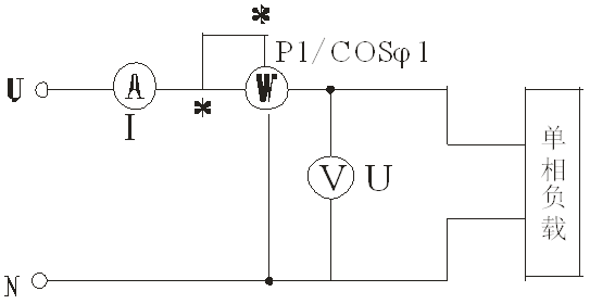 (1)用單瓦特表法測(cè)單相電路的功率,測(cè)量線路接線如下圖所示: