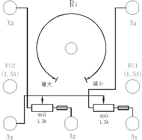 由于實(shí)驗(yàn)的需要,變阻器除了做可變電阻使用外,還可采用電位器接法做分壓器用。例如他勵(lì)直流發(fā)電機(jī)勵(lì)磁電壓調(diào)節(jié)就是采用電位器接法。做分壓器時(shí)可以單只使用,也可以并聯(lián)使用。分壓器接法為: 固定電壓接在A2和X2之間,而可變電壓可以從A3和A2(或A3和A4)端引出。