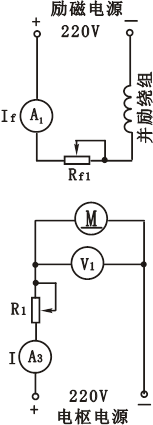 圖2-3  直流他勵(lì)電動(dòng)機(jī)空載試驗(yàn)接線圖