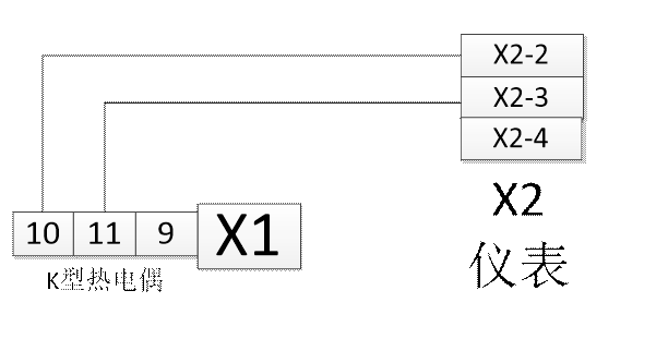 1、 K型熱電偶接法: