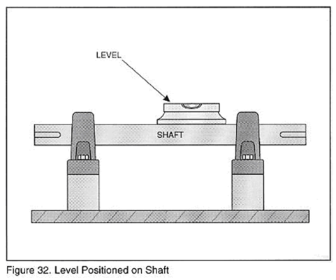 A.  將水平儀放在軸上,觀察氣泡的位置,如圖32所示;