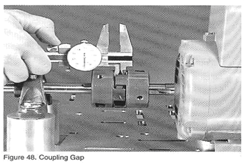 13.調整兩半聯軸器間的空隙為13mm,如圖48所示,然后擰緊電機裝配螺栓