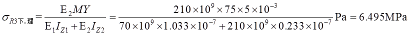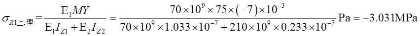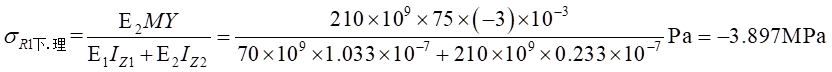 (2)物理關(guān)系。依胡克定律,而由式(1)帶入,可以得出不同材料區(qū)的彎曲正應(yīng)力分別為: