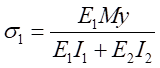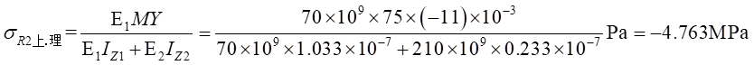 因此,可得到復(fù)合梁Ⅰ和復(fù)合梁Ⅱ正應(yīng)力計算公式分別為