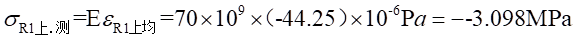 (2)各應(yīng)變片處的實驗應(yīng)力值為: