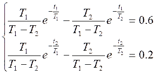 根據上式,就可以利用階躍響應上兩個點的數據確定參數。例如,可以取分別等于0.4和0.8,從曲線上定出。如圖2.1.10所示。