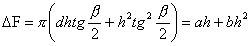 當(dāng)結(jié)構(gòu)設(shè)計已定,則d、 β為常量。式中有h的二次項,一般不能忽略此非線性關(guān)系,只有在圓錐角很小時,才可視為近似線性。