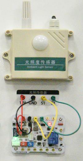 圖2-9 光照度傳感器實(shí)物圖 圖2-10 光照度傳感器實(shí)物接線圖