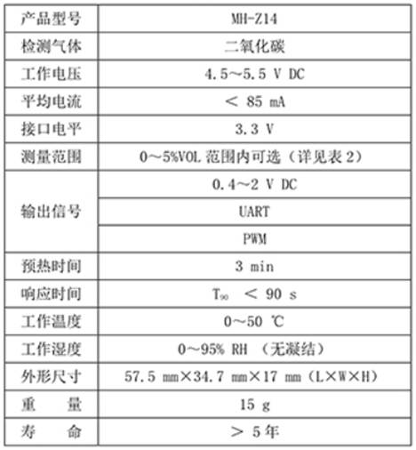 表5-4  二氧化碳模塊參數(shù)圖