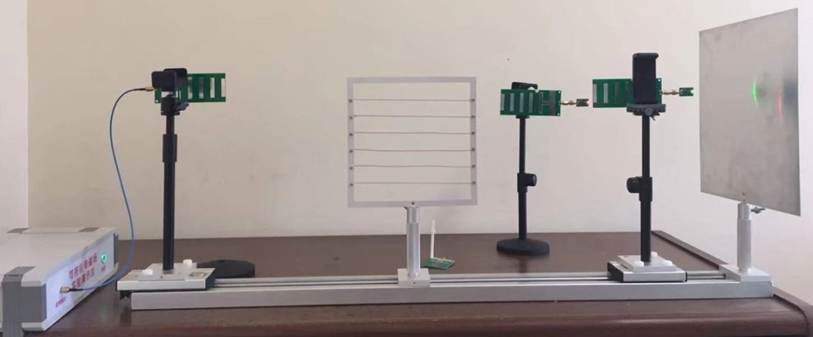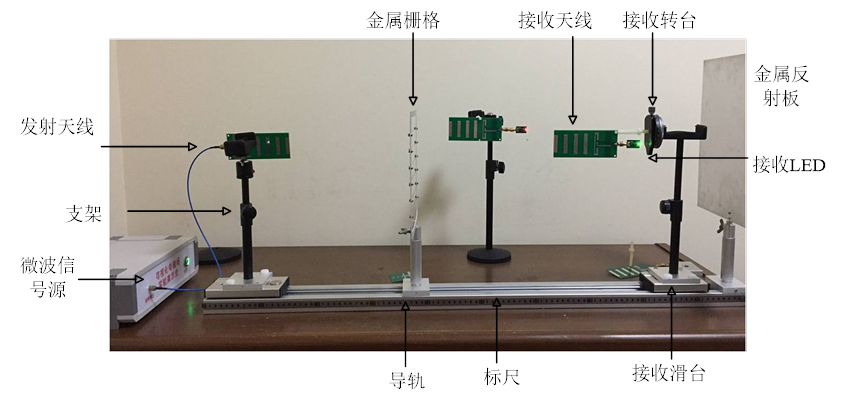 實(shí)驗(yàn)平臺(tái)設(shè)有波長(zhǎng)測(cè)量、功率檢波、電磁場(chǎng)極化等若干簡(jiǎn)單又富有論證性的實(shí)驗(yàn)。將實(shí)驗(yàn)儀器的功率發(fā)射端加載到三種極化天線端口。將天線采集到的感生電流接入LED燈。把檢波天線放置在固定的位置以后,可以看到LED燈的明暗與極化方式有著對(duì)應(yīng)的關(guān)系。將發(fā)射天線的功率輸入天線,通過(guò)調(diào)整檢波天線的位置或者檢波天線的角度方向,觀察發(fā)光燈的明暗變化。這樣就可以直觀的感受到電磁波的分布參數(shù)、極化等豐富的概念。在整個(gè)實(shí)驗(yàn)過(guò)程中,通過(guò)極其簡(jiǎn)單的幾個(gè)操作,就可以將所學(xué)的抽象的知識(shí),通過(guò)具象化的實(shí)驗(yàn)來(lái)驗(yàn)證清楚,進(jìn)一步提高了教學(xué)的效率。增加了學(xué)生對(duì)實(shí)驗(yàn)的印象,提高了學(xué)生動(dòng)手能力,深刻的將公式與現(xiàn)象結(jié)合起來(lái),為以后的工作和學(xué)習(xí)提供了切實(shí)有效的經(jīng)驗(yàn)。提升學(xué)生對(duì)電磁場(chǎng)與波的學(xué)習(xí)興趣,實(shí)現(xiàn)探究性學(xué)習(xí),創(chuàng)造性學(xué)習(xí)。