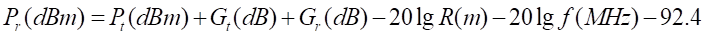 為接收功率,為發(fā)射和接收天線的增益,發(fā)射功率,R為收發(fā)距離。