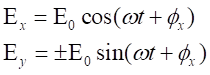 如果Ex和Ey的振幅相等,即Exm=Eym=E0,而相位差p/2,即,