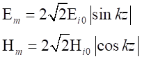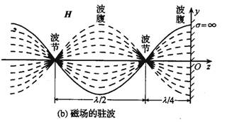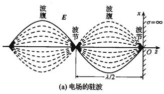由上式可以看到,z≤0空間中的合成波具有如下特點(diǎn)電場(chǎng)強(qiáng)度和磁場(chǎng)強(qiáng)度的振幅不再是常量,沿波的傳播方向按正弦函數(shù)或余弦函數(shù)分布,即在kz=-np,也就
