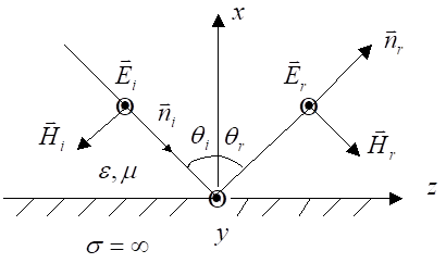 圖2  垂直極化波向理想導(dǎo)體界面上斜入射