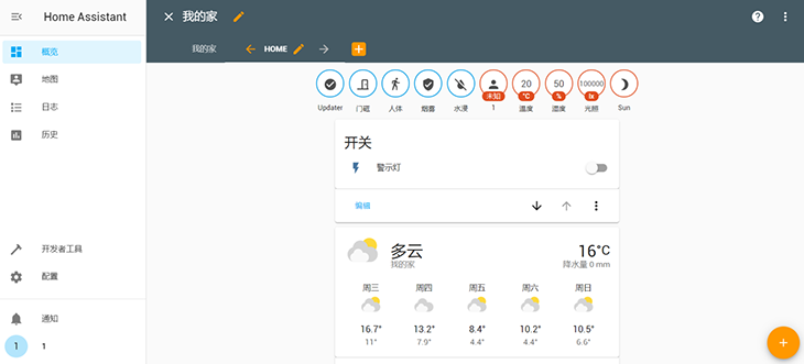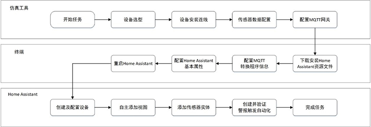 圖:智能家居課程案例,使用自動化智能家居平臺Home Assistant,對安裝好的感知層設備進行數(shù)據(jù)的瀏覽和各種自動或手動的執(zhí)行操作。