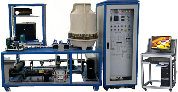 1、實驗操作系統(tǒng)主要包括壓縮機制冷循環(huán)系統(tǒng)、冷凝管特性測試系統(tǒng)、蒸發(fā)管特性測試系統(tǒng)、冷卻塔及冷卻水循環(huán)系統(tǒng)等。實驗操作系統(tǒng)配備谷輪3HP半封閉水冷機組一套,中央空調(diào)室內(nèi)風(fēng)機盤管一套,模擬鍋爐熱水循環(huán)系統(tǒng)一套。