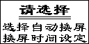 按+/選擇鍵,選擇自動(dòng)換屏或換屏?xí)r間設(shè)定。如選選擇自動(dòng)換屏按功能/確認(rèn)鍵顯示如下: