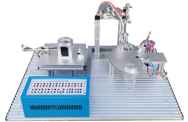 該任務(wù)由氣動(dòng)機(jī)械手、分揀機(jī)構(gòu)、上料機(jī)構(gòu)、安裝網(wǎng)孔板、電氣接口板、電磁閥組等組成,安裝網(wǎng)孔板由有1.2mm優(yōu)質(zhì)不銹鋼鋼板加工制作,機(jī)構(gòu)件由鋁材機(jī)加氧化而成,機(jī)構(gòu)全部為散件提供,按教學(xué)要求由學(xué)員自己動(dòng)手組裝、接線并通過(guò)接口板與外部連接調(diào)試。