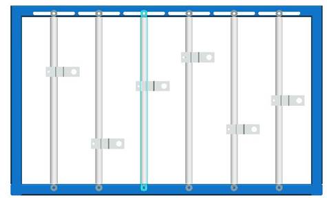 實驗臺機架如圖2所示:機架中有5根鉛垂的活塞桿,它們可沿X軸左右移動,固定靠六角頭螺釘和蝶型螺母固定。需移動時請先將蝶型螺母松開,雙手推動活塞桿.并盡可能使它保持垂直狀態(tài)。活塞桿上的滑塊可沿Z軸上下移動,用內(nèi)六角螺釘將滑塊緊定在活塞桿上。(注意:在移動立柱或滑塊時需用直尺或卷尺量出它們的相對位置再把螺釘擰緊。)