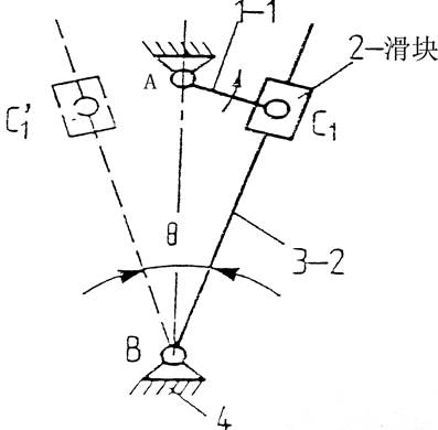 機(jī)構(gòu)說明及工作特點:如圖1所示的導(dǎo)桿機(jī)構(gòu),若使極位夾角θ>0,該導(dǎo)桿具有急回特性。該機(jī)構(gòu)常用于將等速轉(zhuǎn)動轉(zhuǎn)換為具有急回特性的往復(fù)擺動。
