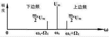 調(diào)幅的過程就是在頻譜上將低頻調(diào)制信號搬移到高頻載波分量兩側(cè)的過程。在單頻調(diào)制時,其調(diào)幅波的頻帶寬度為調(diào)制信號頻譜的兩倍,即
