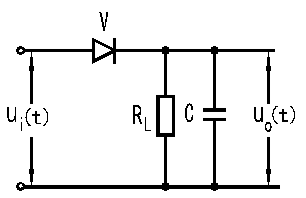 圖2-1是二極管大信號包絡檢波電路,圖2-2表明了大信號檢波的工作原理。輸入信號