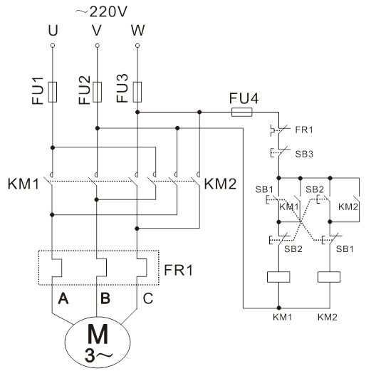 3、按鈕聯(lián)鎖正反轉控制線路: