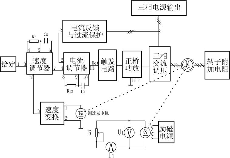 (1) 了解并熟悉雙閉環(huán)三相異步電機(jī)調(diào)壓調(diào)速系統(tǒng)的原理及組成。
