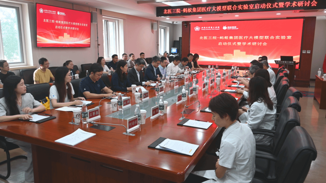 2025年8月22日上午,北京大學(xué)第三醫(yī)院—螞蟻集團(tuán)醫(yī)療大模型聯(lián)合實(shí)驗(yàn)室啟動(dòng)儀式暨學(xué)術(shù)研討會(huì)在北京大學(xué)第三醫(yī)院舉行。螞蟻集團(tuán)領(lǐng)導(dǎo)及集團(tuán)代表,北京大學(xué)第三醫(yī)院領(lǐng)導(dǎo)及相關(guān)科室負(fù)責(zé)人、聯(lián)合實(shí)驗(yàn)室骨干等參會(huì)。