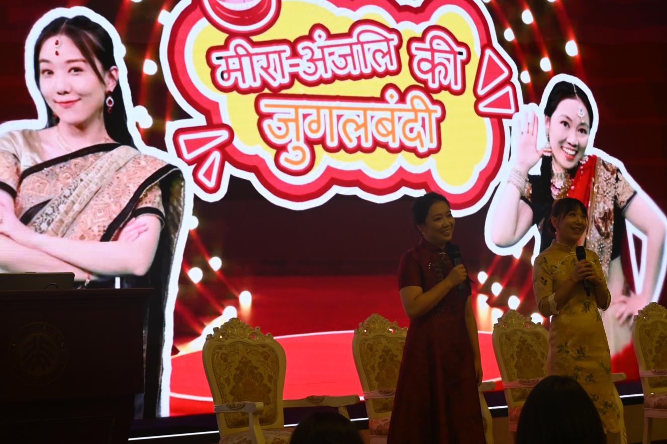 中場互動環(huán)節(jié),來自總臺亞非中心印地語部的張肖、朱晶晶用《姐妹逗》脫口秀表演,將活動氣氛推向高潮。