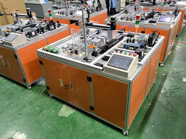 為了適應(yīng)國(guó)家對(duì)高端智能制造設(shè)備所需要的高技能人才的培養(yǎng),上海頂邦教育設(shè)備制造有限公司經(jīng)多方調(diào)研及深度校企合作研發(fā)出系列工業(yè)機(jī)器人應(yīng)用與維護(hù)專業(yè)實(shí)訓(xùn)考核系統(tǒng)設(shè)備。該系統(tǒng)符合"四個(gè)定位":即職業(yè)技能競(jìng)賽的定位;技能培訓(xùn)與鑒定的定位;做一體化教學(xué)改革的定位;符合高技能人才培訓(xùn)基地的定位。并符合國(guó)家對(duì)"關(guān)于進(jìn)一步深化中等職業(yè)教育教學(xué)改革的若干意見(jiàn)"的文件精神,緊緊圍繞以國(guó)家職業(yè)標(biāo)準(zhǔn)為依據(jù),以綜合職業(yè)能力培養(yǎng)為目標(biāo),以典型工作任務(wù)為載體,以學(xué)生為中心,根據(jù)典型工作任務(wù)和工作過(guò)程,設(shè)計(jì)新的課程體系和內(nèi)容,按照工作過(guò)程的順序和學(xué)生自主學(xué)習(xí)的要求進(jìn)行教學(xué)設(shè)計(jì)和安排教學(xué)活動(dòng),實(shí)現(xiàn)理論教學(xué)與實(shí)踐教學(xué)融通合一,能力培養(yǎng)與工作崗位對(duì)接合一,使實(shí)習(xí)與頂崗工作學(xué)做合一,最終培養(yǎng)學(xué)生的技術(shù)能力、方法能力和社會(huì)能力。