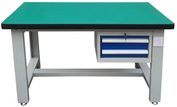 功能:由桌身、工具柜、臺面組成,用于電氣及機械結(jié)構(gòu)的裝配平臺。 尺寸:不小于L1500mm×W700mm×H780mm 桌身:裝配桌預(yù)設(shè)電源插座擴展孔,依據(jù)用途可加裝電源插座。整個裝配桌可隨意拆裝,方便運輸安裝。 工具柜:采用冷軋鋼板折彎焊接而成,工具柜有多個抽屜,可儲藏工具,放置于裝配桌底部一側(cè)。 臺面:采用50mm厚高壓復(fù)合成型纖維板,表面覆蓋2mm綠色防靜電膠皮,四邊并以5mm ,PVC截面封邊,臺面具有耐磨、耐熱、耐污及易清潔等特點。具有耐沖擊、耐酸堿、吸震、防靜電的功能 ![]() (不需要抽屜,丁字腳) |